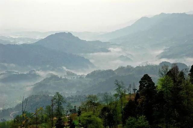 西南边缘,时有烟云在半山飘浮,蔚为壮观。山形酷似峨眉,雄秀奇险幽,颇有峨眉山的架式。民间传说先有此山,后有峨眉山,故名"老峨山"。