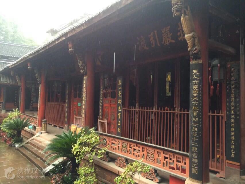乌尤寺位於四川省乐山东的沫水(大渡河)、若水(青衣江)和岷江汇合处的乌尤山顶。始建於唐至德——乾元年间,原名正觉寺,宋代改名乌尤寺。寺内建筑结构森严,殿宇共有七座,都集中在乌尤山头,现保存完整的殿宇有天王殿、弥陀殿、弥勒殿、大雄殿、观音殿、罗汉堂等。由前殿西行还有怡亭和尔雅台等胜迹。尔雅台是汉代文学家郭舍人在乌尤山注释《尔雅》的地方。寺之周围竹木扶疏,楼阁亭台错落其间,更显得格外清幽。
