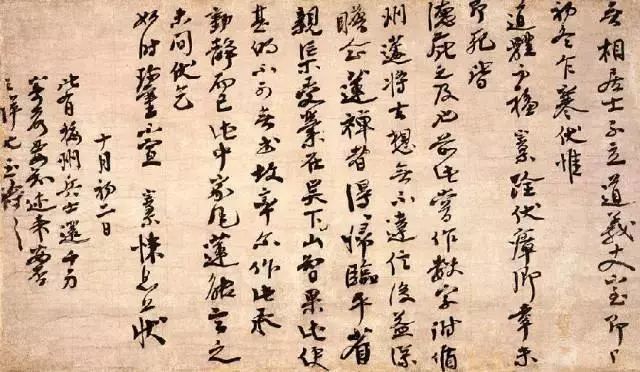 该尺牍是大慧宗杲放逐于梅州时寄给友人无相居士的书信,笔致富于气势,为大慧宗杲的书迹中最受重视的作品。