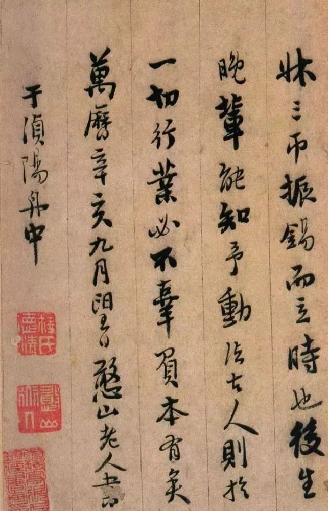 憨山(1546-1623),法名德清,字澄印,别号憨山。明代“四大高僧”之一。其书法师尚唐人欧阳询、虞世南,善行草,下笔平稳、含蓄凝炼、秀润中和,于平淡中见功力,这与他参襌净业有极大关联。