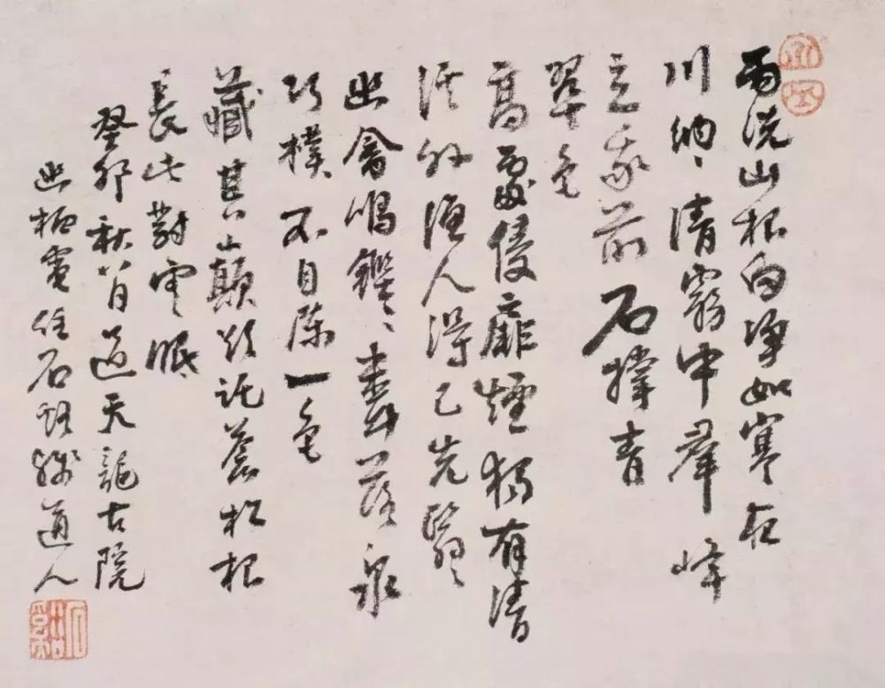 直至清代:八大山人、弘仁、髨残,又有石涛异军突起
