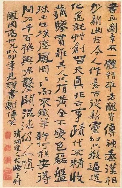 虚堂智愚书气韵清美,法度精严。既借鉴了当时书家黄庭坚等多人的书风,又自成一家,雄浑中更多了一分秀妍之美和平穆之风。