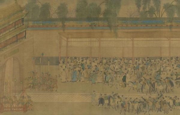 明 仇英 观榜图(局部) 卷 34.4× 638 cm 台北故宫博物院藏