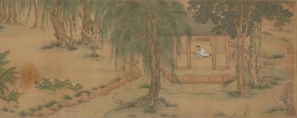 《梧竹书堂图》轴 明 仇英作 纵148.8厘米 横57.2厘米 上海博物馆藏