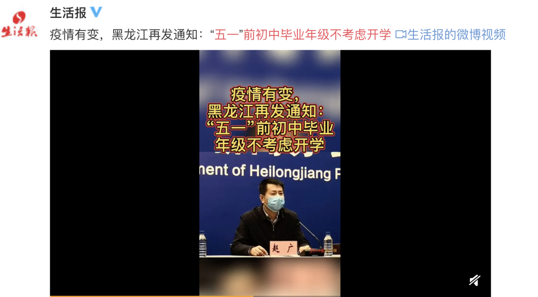 刚刚黑龙江正式发布了通知,延迟所有学校开学!五一前不考虑开学。。。