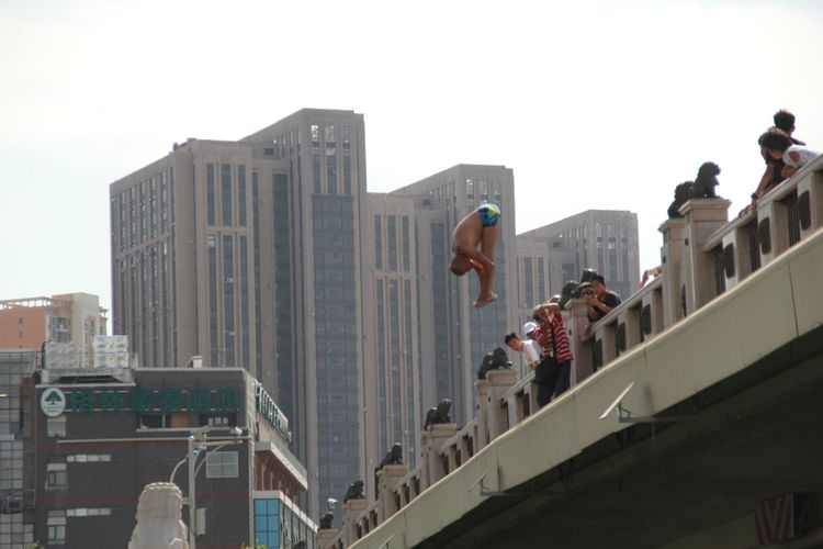 据说天津卫的跳桥运动也已经有很长的历史了,他们用自己的方式“拥抱”这个城市,投入他们母亲河——海河的怀抱!