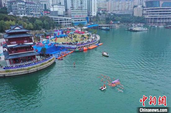 国内800余名冬泳爱好者横渡长江三峡。巴东融媒体中心 供图