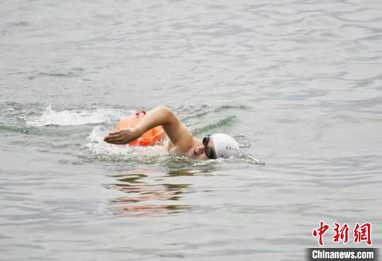 冬泳健儿在宽约1000米的公开水域横渡长江。巴东融媒体中心 供图