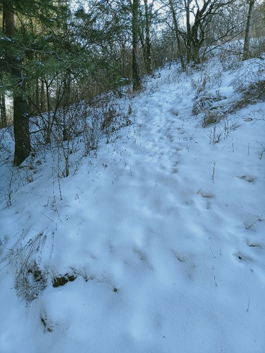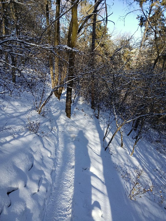 今天上午就抽时间从后山徒步踏雪再次穿越玄天岭。