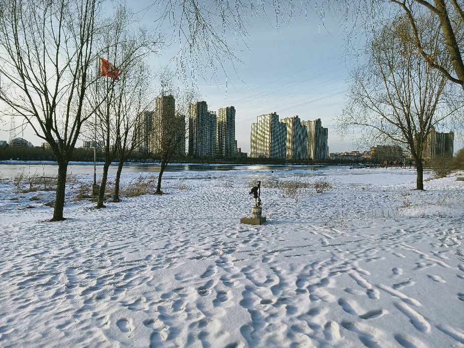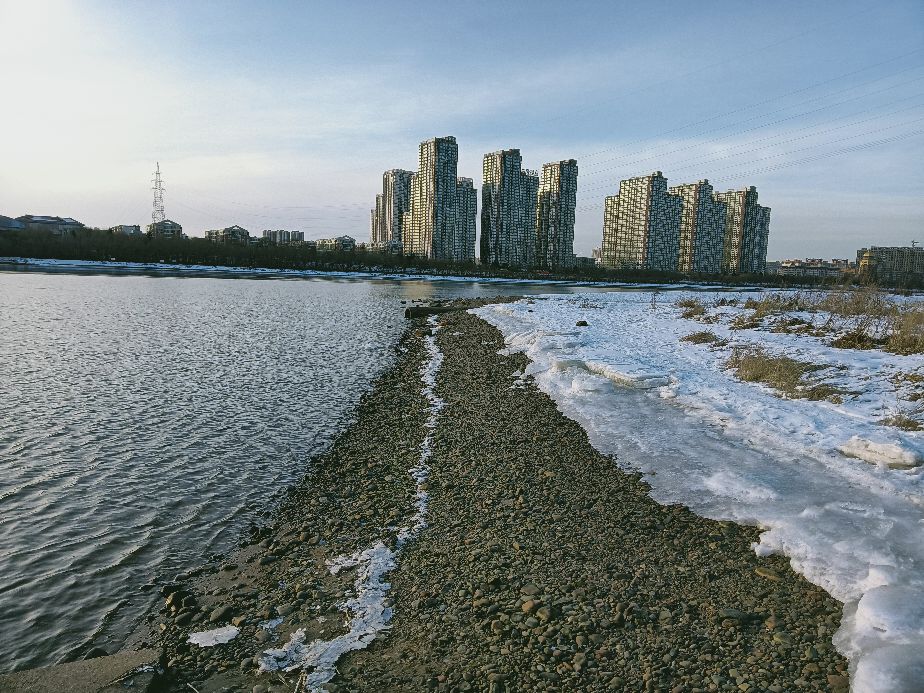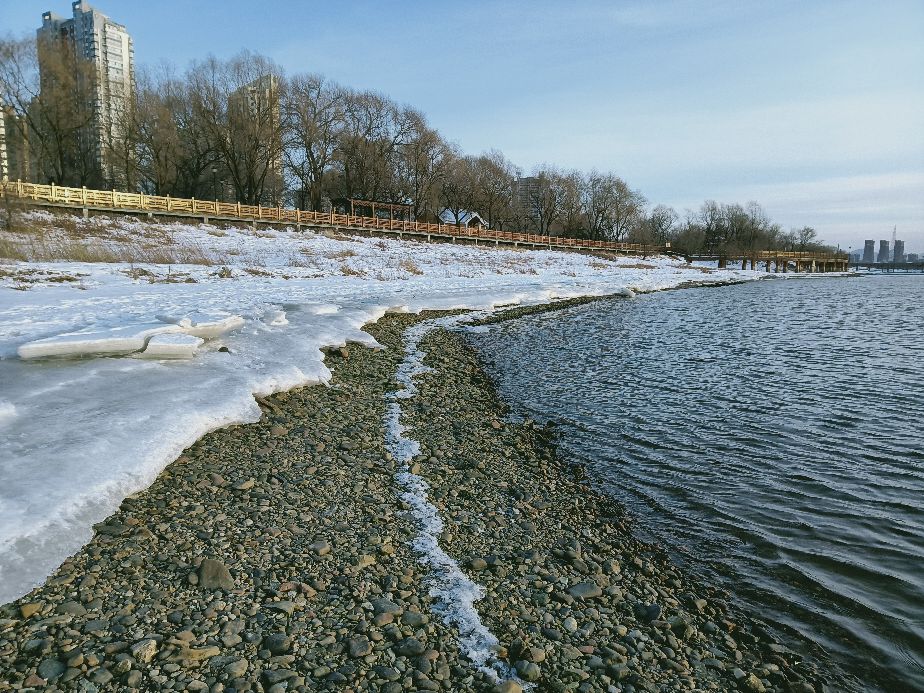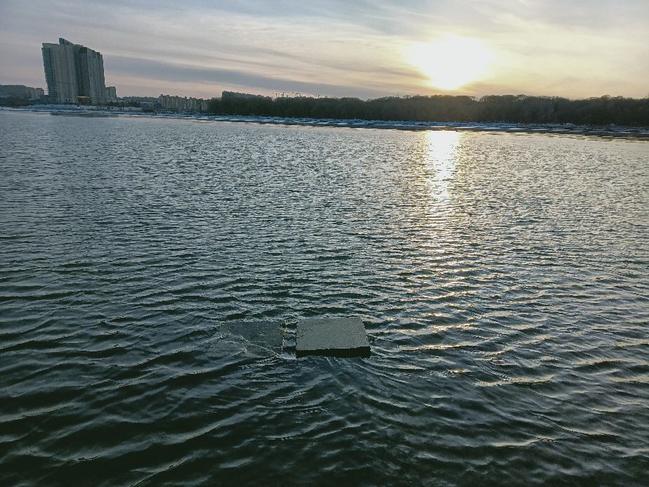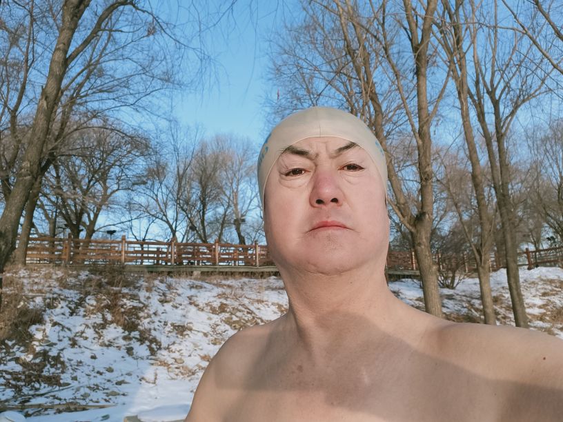 下午我又到江滨冬泳基地去游泳。下水的时候快日暮西山,气温零下十度左右。