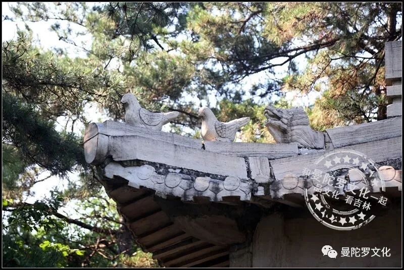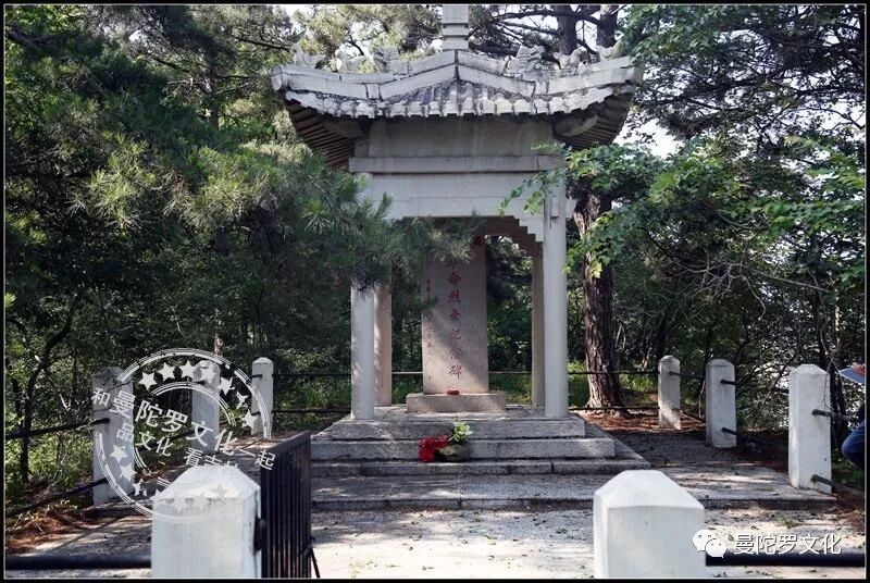 穿过植被丰富的山坡,高大的树木在身边路过,前方树影之中一处亭式建筑映入我们的眼帘,青松环抱一座中式风格的碑亭,石碑上镌刻着“革命烈士纪念碑”七个大字,大字之上有一颗五角星,五角星中有一枚党徽,两侧镌刻着“精神不死”横书四个楷书,落款中华民国三十八年五月,把时间定格在1949年5月中华人民共和国建国前。一圈围栏围绕在亭子的周围,圈起了一块空地,围栏的院门开着,虽然没有看到有人看管,但是地面清理得十分干净,亭前还有祭拜者留下的花朵。碑亭是四根石柱支撑着石头质地的亭顶,雕刻的瓦片、瓦当、檐沟、檐头、檐牙造型棱角分明,四角飞檐之上有各有石头雕刻的一只嘲风、两只和平鸽,毛发和羽毛清晰可见。前者是中国传统建筑上的神兽,后者是和平寓意的飞鸟,也算是古今结合吧。碑亭的一些地方用水泥修补着,看来经常有人维护,整个碑亭显得庄严肃穆。