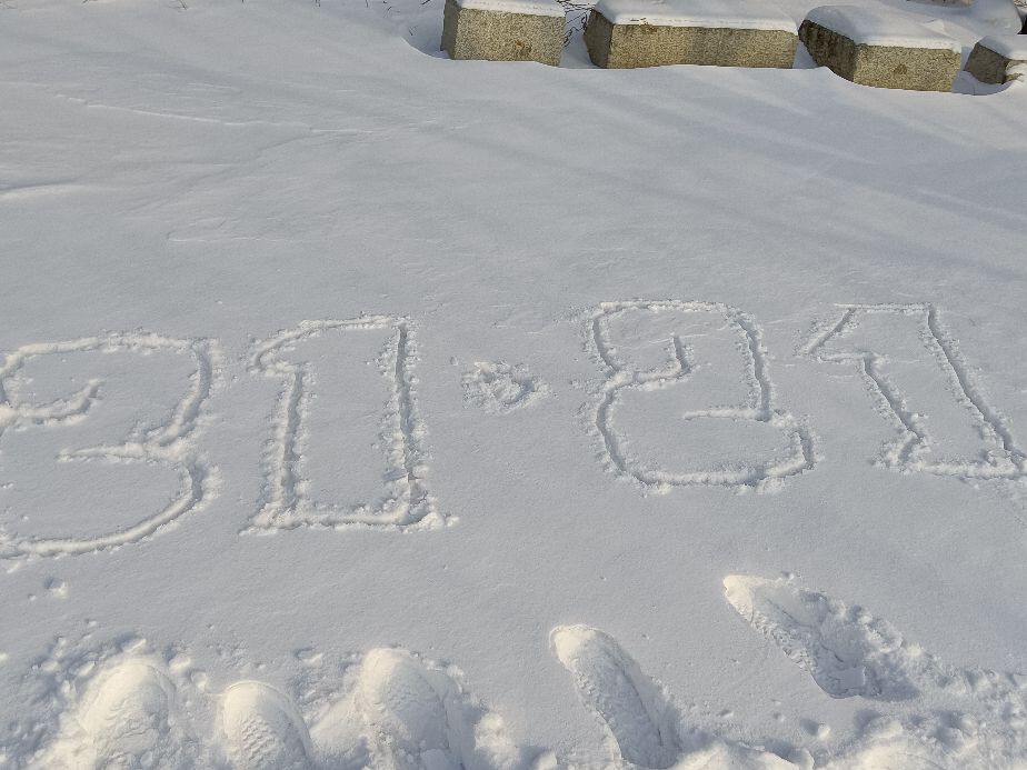我的右胳膊肘和膝盖骨,胯骨冰冻的够呛,百般无奈我爬起来,去外衣取我的手机,请他再帮助我在凛冽刺骨的寒风之中拍了几个难得的雪地(左侧卧),江边的照片。