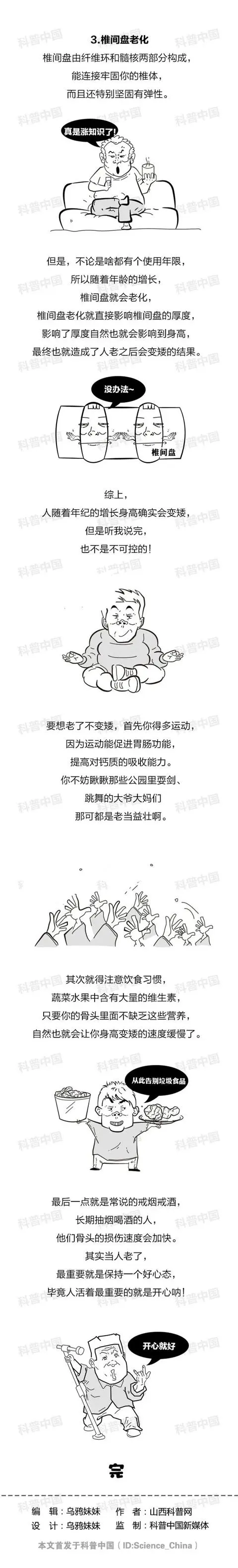 综上所述大家要想老了不变矮平常一定要多晒太阳、多运动注意站姿和坐姿科学合理的饮食习惯哦