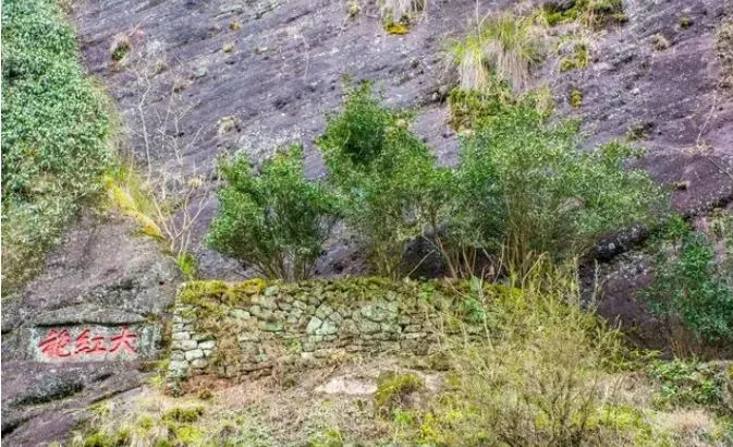 母树大红袍位于武夷山九龙窼的悬崖峭壁上,天心岩下永乐禅寺之西的九龙巢陡壁上,至今仍保留着1927年天心寺和尚所作的“大红袍”石刻。