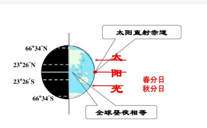 春分时,全球无极昼极夜现象。春分之后,北极附近开始极昼,范围渐大;南极附近极昼结束,极夜开始,范围渐大。