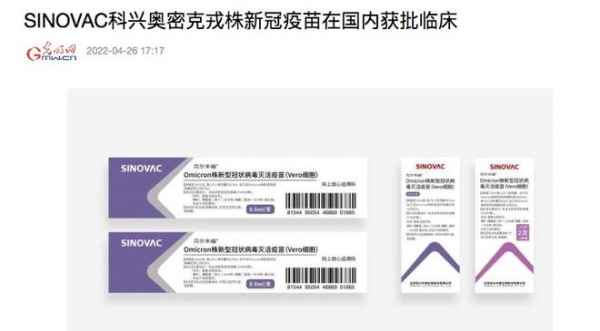 2022年4月14日,SINOVAC科兴基于奥密克戎变异株研制的新冠病毒灭活疫苗在香港特区获得临床批件。