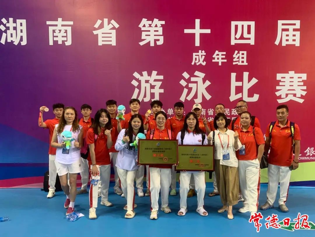 常德成年组游泳队获得集体荣誉。来自全省各市州12支代表队的203名运动员参加比赛。常德派出了18名运动员参与24个项目的角逐,其中,乙组队员12名,甲组队员6名。