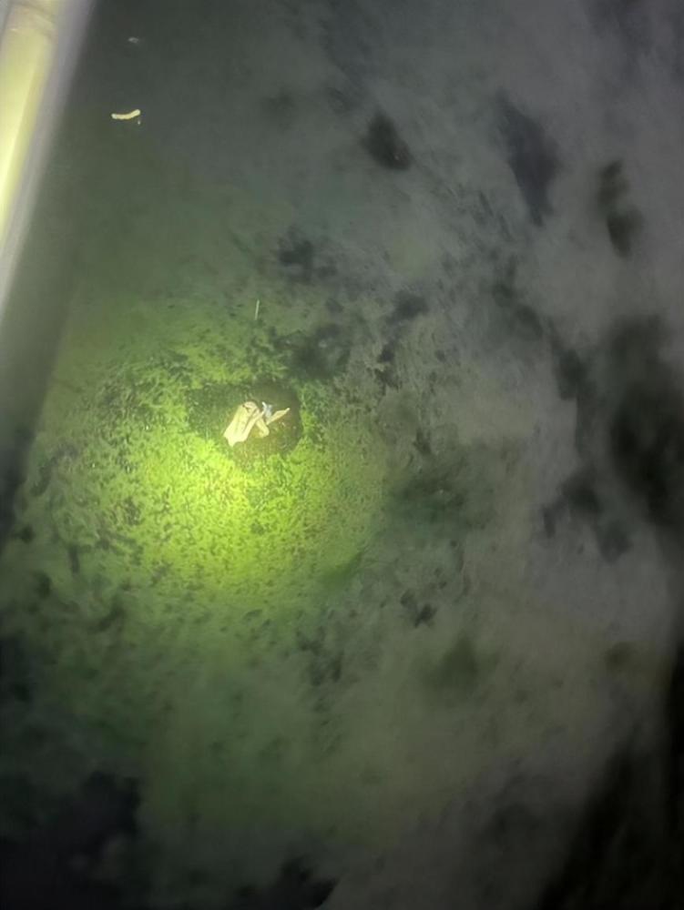 到达报警人描述的地点后,天色已黑,水里面距离桥面约20米高,河上还漂浮着浮萍和水草,消防救援人员赶紧使用强光手电在水面上搜寻。