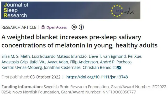 2020年9月,来自瑞典卡罗林斯卡医学院的研究人员,发表在Journal of Clinical Sleep Medicine上一篇论文,通过对照毛毯的厚度,结果发现: