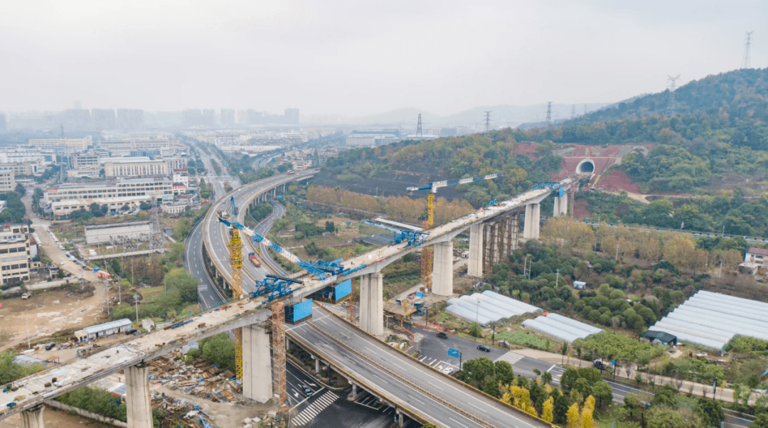 在金甬铁路新昌江特大桥施工现场,随着最后一块箱梁的浇筑完成,该桥实现了全桥贯通。新昌江特大桥位于嵊州市,全长1958.39米,为高架车站桥,最大桥宽达55.1米,墩身最高32米,全桥共有墩台151个,为新昌江上第一座铁路桥。大桥分七次分别跨越常台高速、X819县道、京福线、G104国道、新昌江、嵊新大道和杭台高铁,施工难度大、安全风险高,是金甬铁路全线重点控制性工程。
