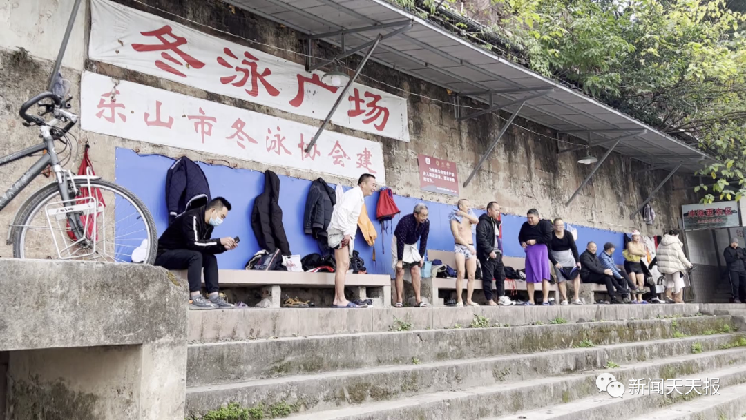 这里是位于乐山中心城区肖公嘴的冬泳广场,眼下虽然已经是冬季,但每天仍有上百人来这里进行冬泳锻炼。众多游泳爱好者中,头发花白的吴德超格外引人注目,只见他麻利地换好衣服、绑好浮漂后,纵身下水、挥臂畅游。