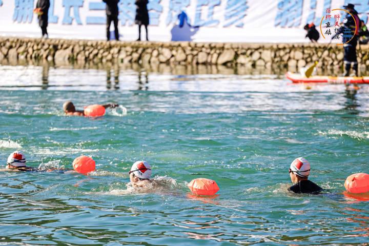龙舟赛后,冬泳比**上开赛。