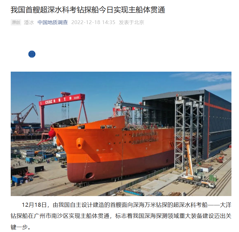 标题: 【面向深海万米!】我国首艘大洋钻探船亮相 —2022-12-18