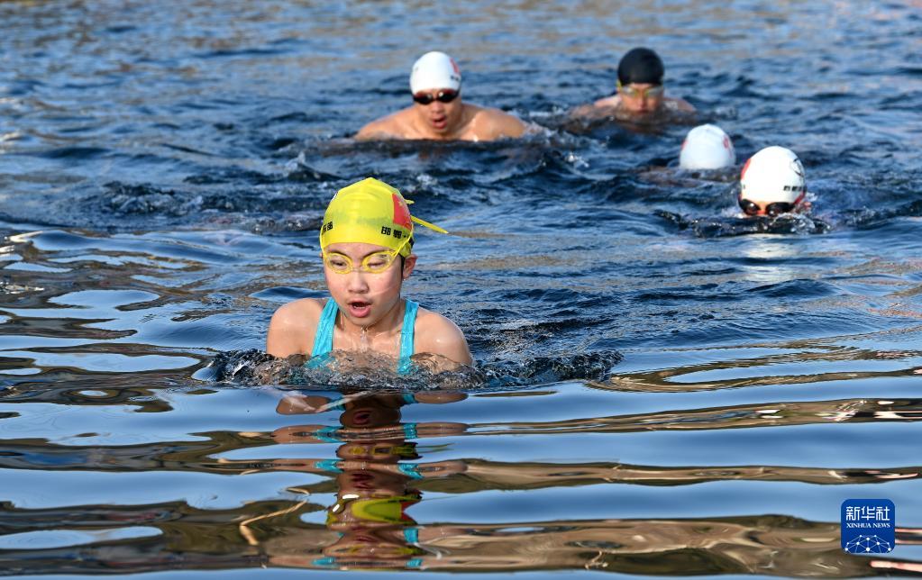 当日,河北省邯郸市峰峰矿区的冬泳爱好者不畏严寒,在水中畅游,以这种特别的方式迎接新年的到来。