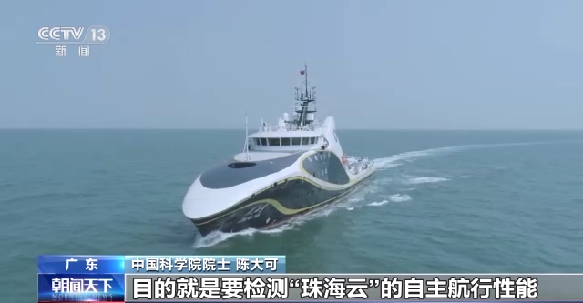 中国科学院院士 南方海洋实验室主任 陈大可:我们这一次是“珠海云”的第一次专业海试,目的就是要检测“珠海云”的自主航行性能,以及我们无人艇的收放这些步骤。连续12个小时就是无人的,完全可以自己避障,规划路径等等,完全达到了我们原来的设计指标。