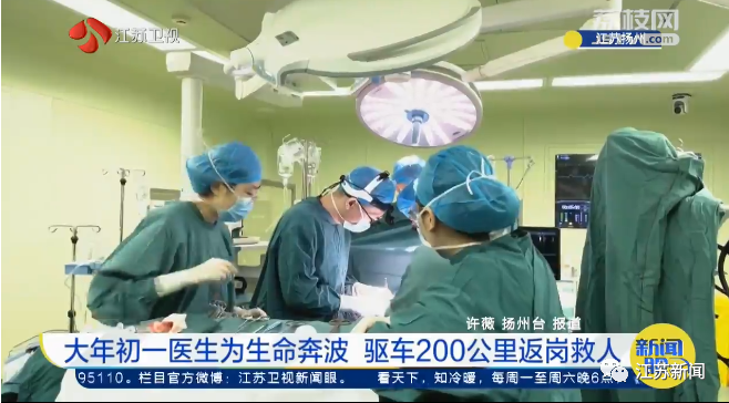 当天凌晨四点多,唐程斌紧急开车从苏州赶回扬州。科室其他医护人员也已赶到医院,开始麻醉等前期准备。早上7点,唐程斌抵达手术室,消毒后立即走上手术台。