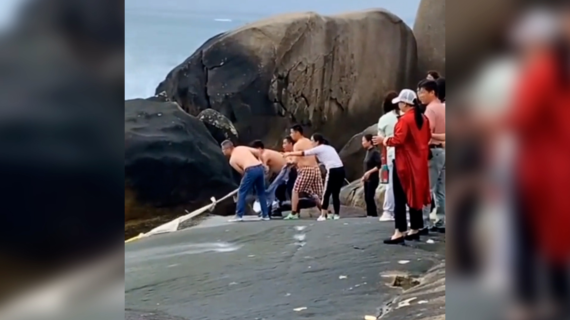 看着丈夫、父亲都跑下去救人,在岸边的户倩楠心提到了嗓子眼儿。“他们俩都不会游泳,我老公还只穿了个拖鞋”,户倩楠说,“海边的礁石都很光滑,很担心他们在救人的时候,自己滑进海里。”