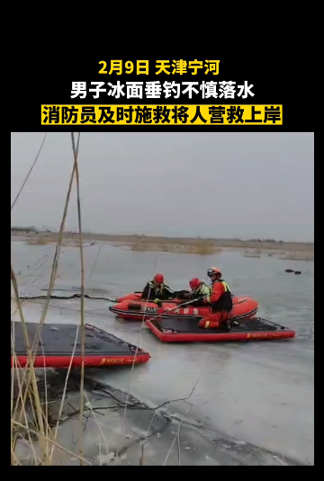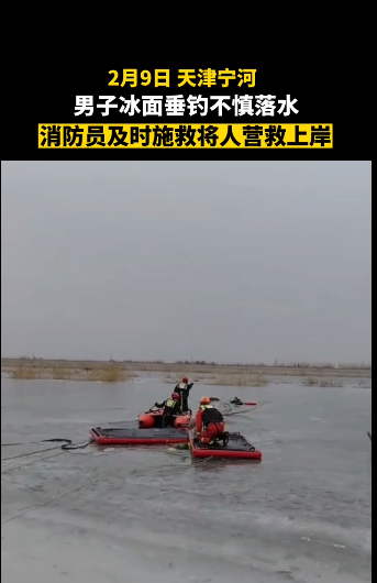 惊险!一男子冰面垂钓不慎落水,消防员紧急施救! --宁河融媒