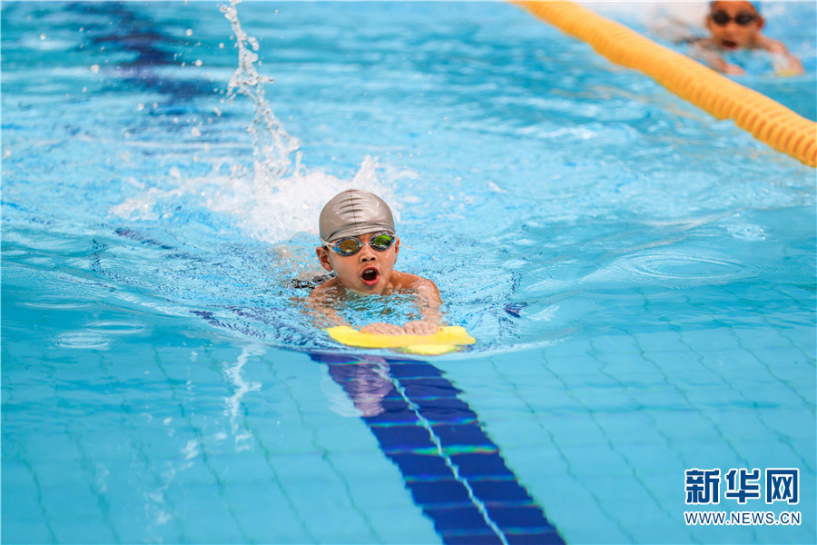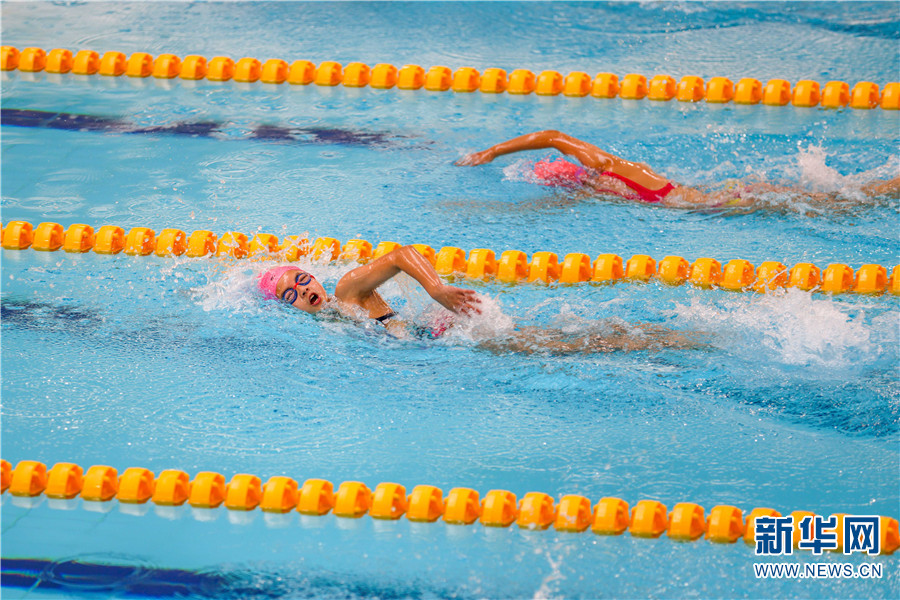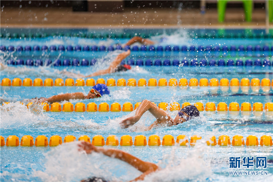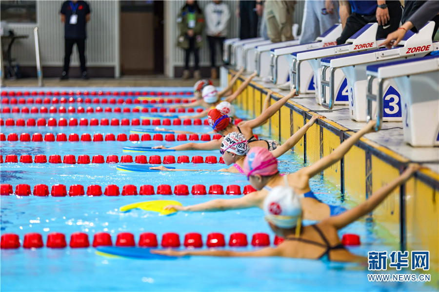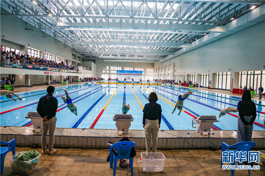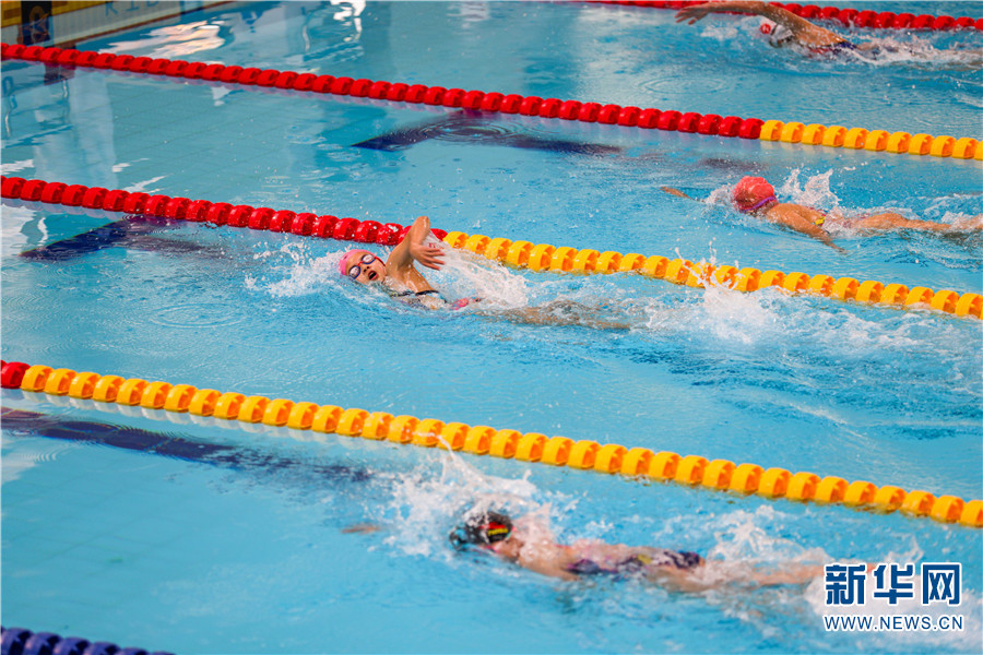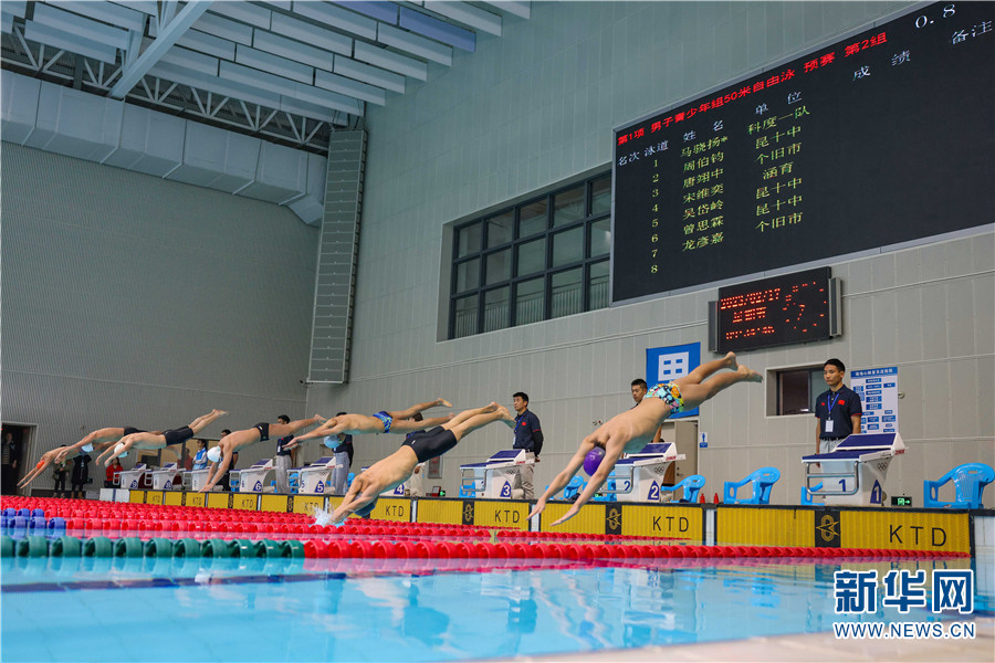 2月17日上午,云南省青少年游泳锦标赛在开远市体育创业园游泳馆举行。新华网发(陶家淇 摄)
