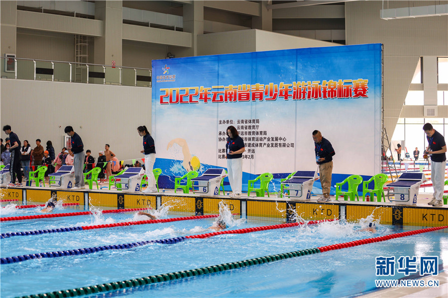 2月17日,2022年云南省青少年游泳锦标赛在云南省红河哈尼族彝族自治州开远市体育中心游泳馆开赛。来自全省22支代表队约400名运动员参赛。