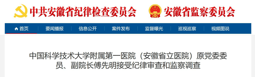 近日,安徽省监察委员会发布一则通报,中国科学技术大学附属第一医院(安徽省立医院)原党委委员、副院长傅先明接受纪律审查和监察调查。