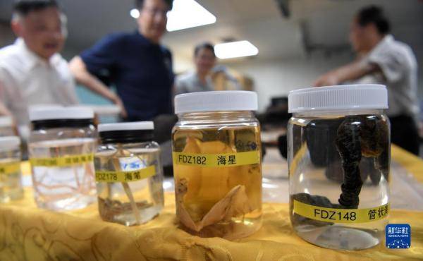 3月11日,“探索一号”科考船携“奋斗者”号全海深载人潜水器抵达三亚,科研人员在介绍采集的深渊宏生物、岩石、结核、沉积物样品。新华社记者 陈凯姿 摄