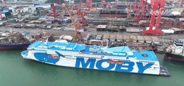 这是中国船舶集团广船国际为意大利MOBY Line航运公司建造的2500客/3800米车道豪华客滚船“MOBY FANTASY”号轮,船长237米、型宽33米,服务航速约23.5节,交付后将在地中海沿岸的意大利热那亚、奥尔比亚以及里窝那之间的航线运营。