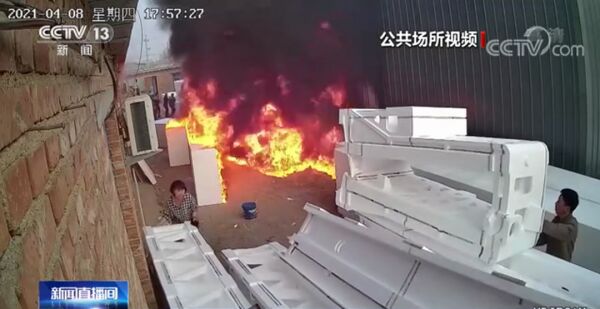 2021年4月,河北沧州泊头市的一处泡沫型材加工作坊发生火灾。经消防部门现场勘察初步认定,火灾原因是员工在用点火的方式清理杨柳絮时,引燃周边泡沫型材所致,所幸没有造成人员伤亡。