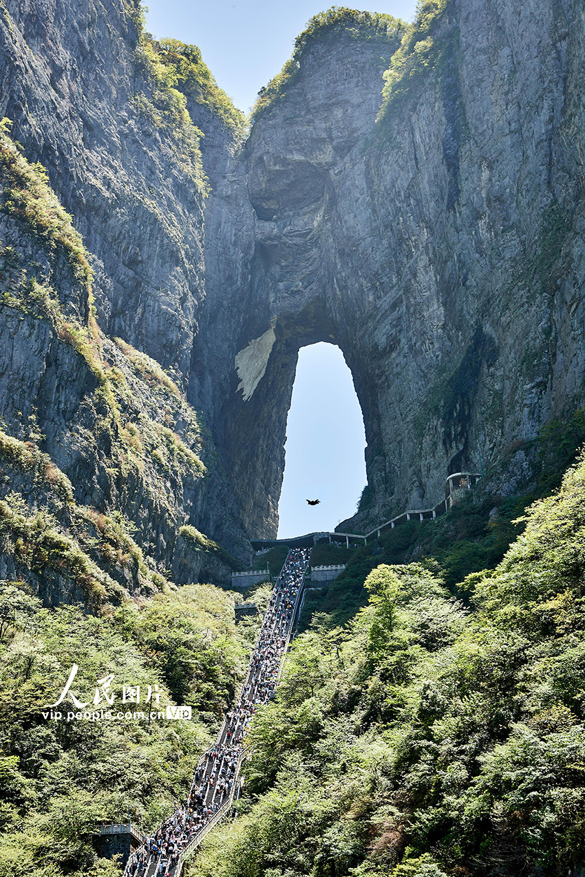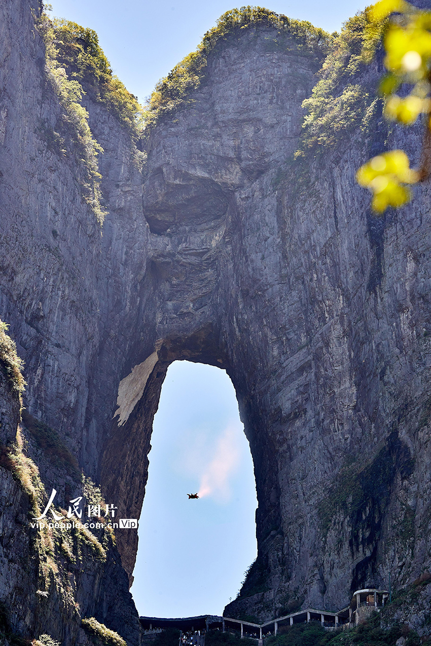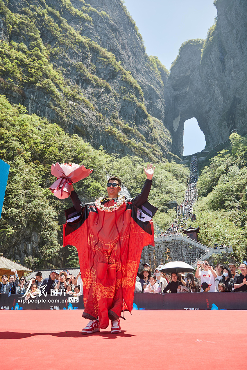 祝贺中国翼装飞行运动员张树鹏在张家界天门山挑战“翼装飞行穿越天门洞”圆满成功!
