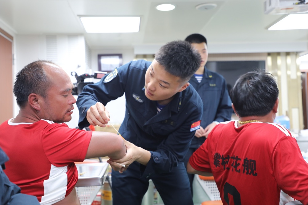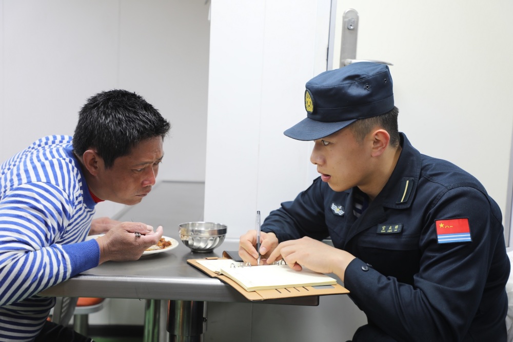 舱外海风呼啸,舱内温情满满。落水人员成功被救到舰上后,攀枝花舰立即安排军医对他们进行身体检查诊治和心理安抚,官兵主动为他们换上干净整洁的衣袜,腾出床铺让他们休息,随后又端来一碗碗热气腾腾的姜汤、小米粥,帮助落水人员逐步恢复体力。