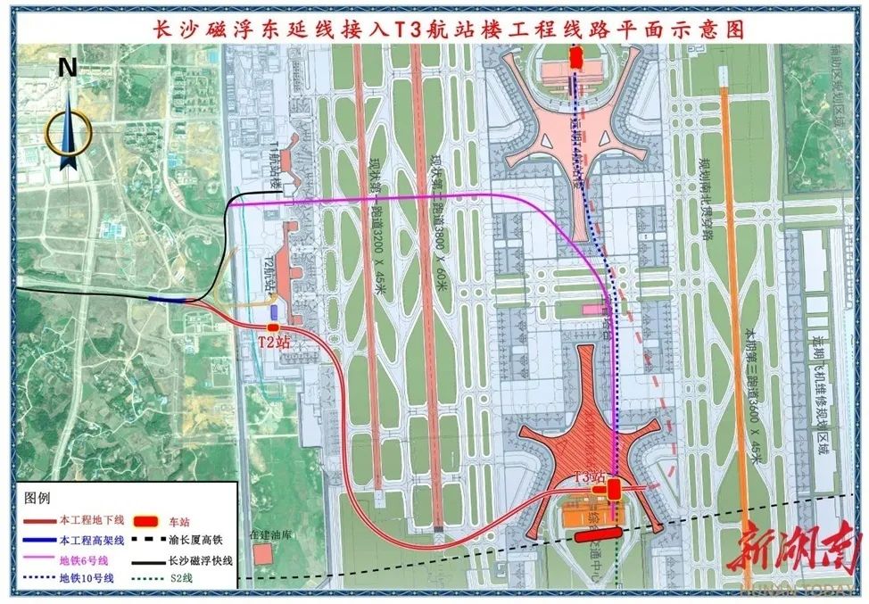 长沙磁浮东延线接入T3航站楼工程位于长沙市长沙县黄花镇境内,线路全长约4.45公里,是实现长沙火车南站与长沙黄花机场点对点快速接驳、完成空铁联运的快速骨干客运交通线路,对打造以长沙黄花机场为中心的综合交通枢纽具有重要意义。该项目投入运营后,黄花国际机场T2航站楼到T3航站楼的换乘时间仅用2分钟。