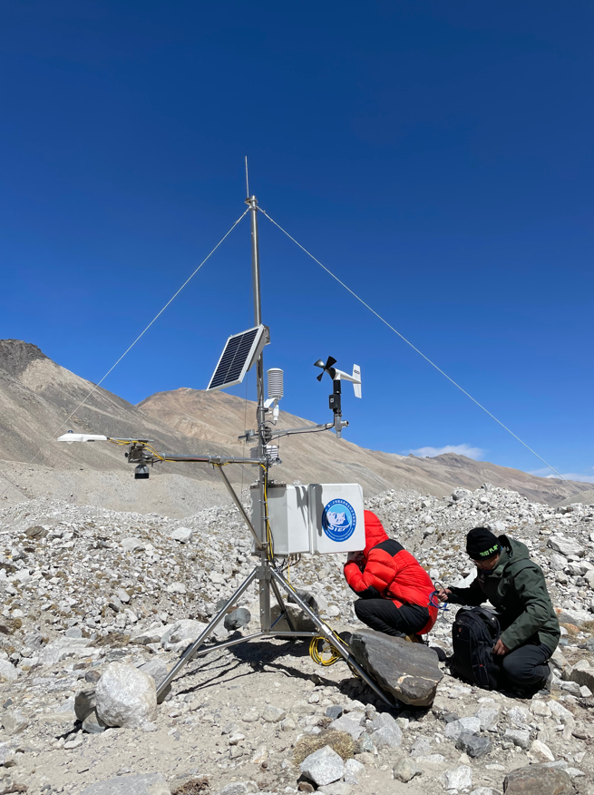 2022年4月24日,这是在珠峰地区海拔5200米左右位置架设的自动气象站。新华社 图