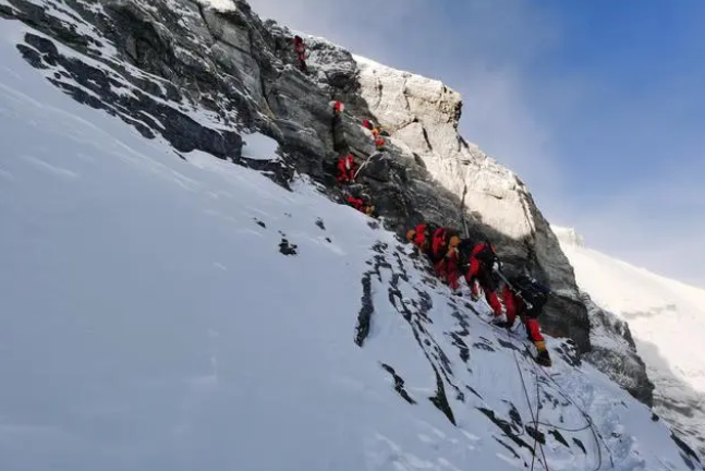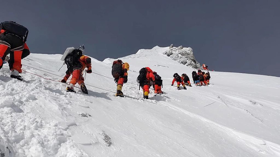 5月23日,珠峰科考登顶科考队正在冲顶。新华社 图