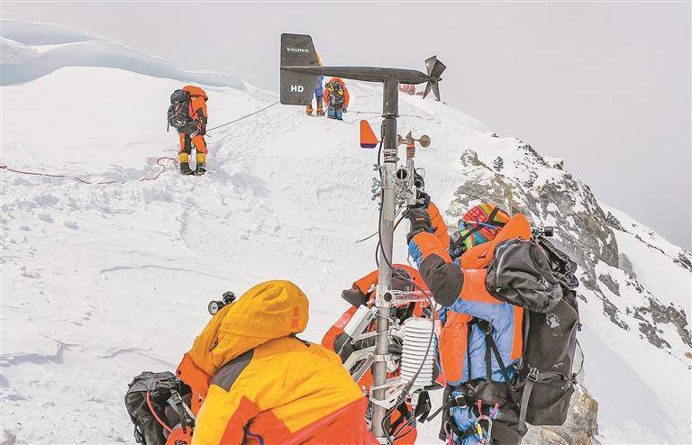 固定钢筋绳索,更换蓄电池,安装风速风向传感器……当日凌晨3时,科考队员从海拔8300米的突击营地出发,历经8个小时攀登,抵达海拔8830米的世界海拔最高自动气象观测站。经过约1个小时紧张工作,气象站零部件升级工作全部完成。为此,他们曾在西藏廓琼岗日冰川、珠峰大本营等地经过10余次反复练习,确保每个人熟悉操作流程。