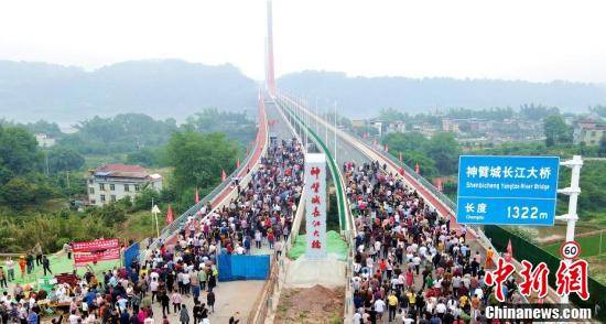两岸群众以特别的“踩桥”方式庆祝大桥建成投用。