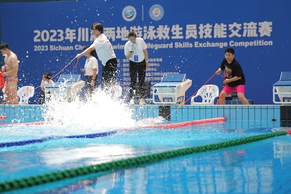 ▲2023年川渝两地游泳救生员技能交流赛在渝举行。主办方供图