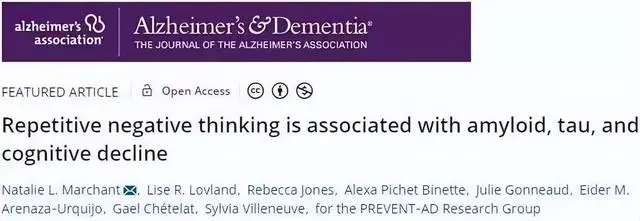 发现更多表现出持续性消极思维的人群,在随访期间认知能力下降更明显,尤其是短期和长期记忆力下降,而这也是阿尔茨海默病的早期征兆之一。