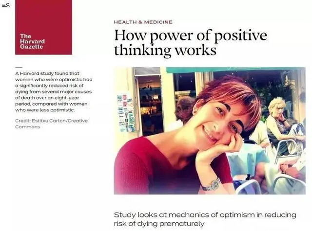 研究在八年中对7万名女性进行了调查,发现那些更乐观的人死于心脏病、卒中、癌症、感染、呼吸道疾病的几率分别降低38%、39%、16%、52%、38%。1