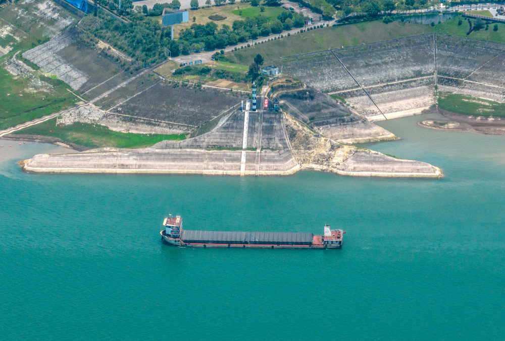 6月10日,船舶有序通过三峡双线五级船闸(无人机照片)。据水利部长江水利委员会消息,截至6月10日,长江流 ...