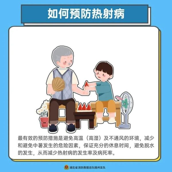 防止热射病,天气太热不出门,房间要开空调,不能忽视热射病的发生。